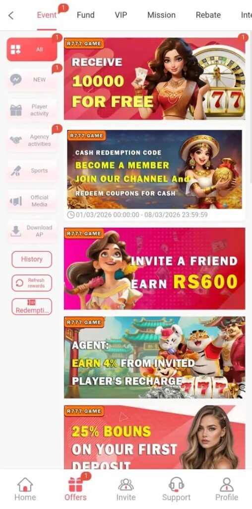 The R777 Game is an online real-money gaming app that allows Pakistani users to earn cash by playing games. Players can enjoy slots, card games, and lucky draws. Meanwhile, the app rewards users with bonuses and commissions.